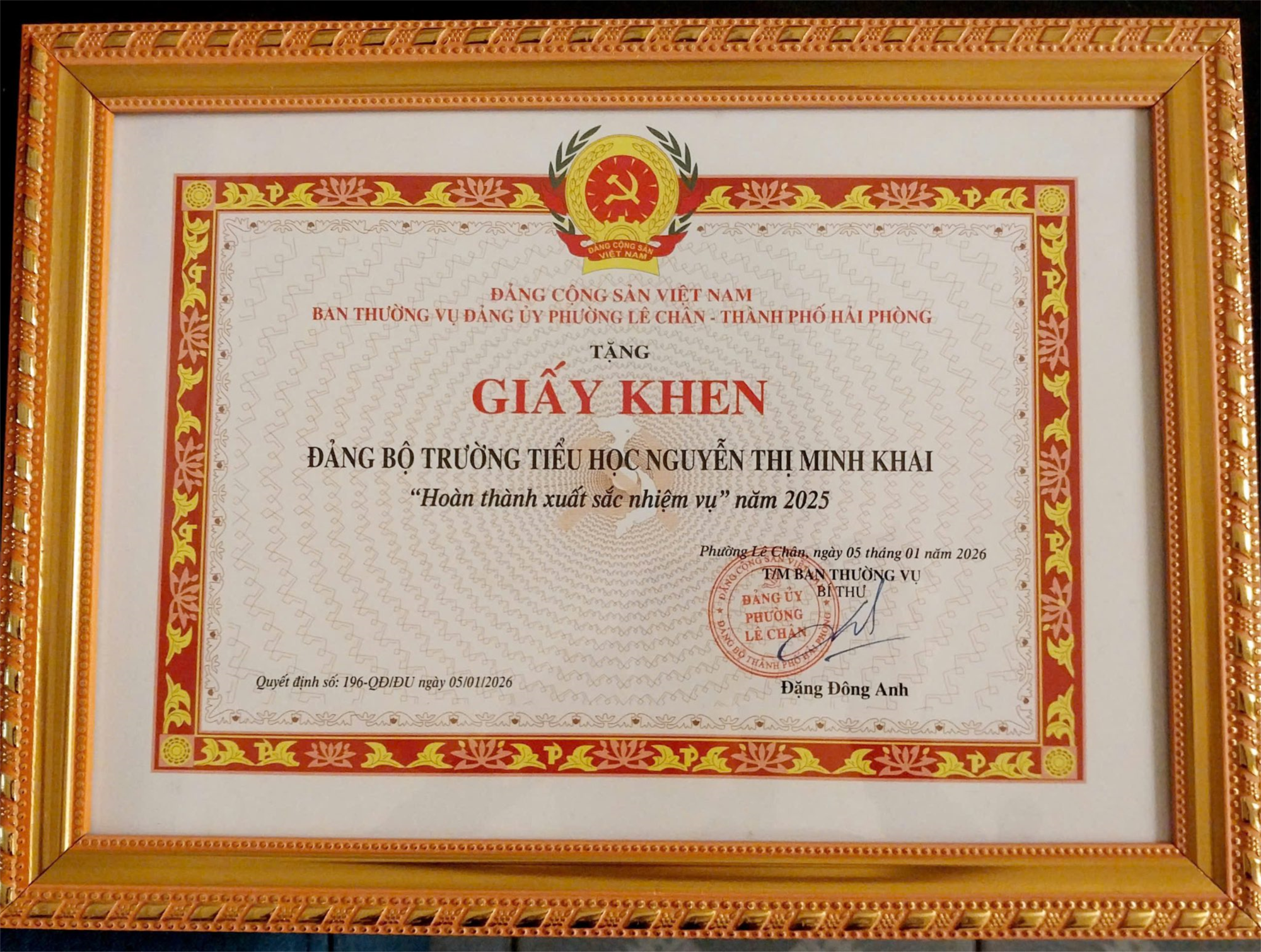 Trong niềm vinh dự chung, Đảng bộ Trường Tiểu học Nguyễn Thị Minh Khai được công nhận danh hiệu “Hoàn thành xuất sắc nhiệm vụ” năm 2025.
