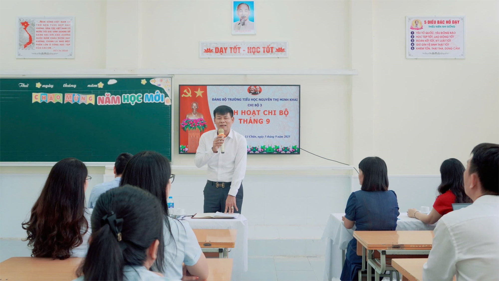 hiều nay (5/9/2025), Chi bộ 3 – Trường Tiểu học Nguyễn Thị Minh Khai đã tổ chức buổi sinh hoạt định kỳ tháng 9/2025.Buổi sinh hoạt vinh dự được đón tiếp các đồng chí: