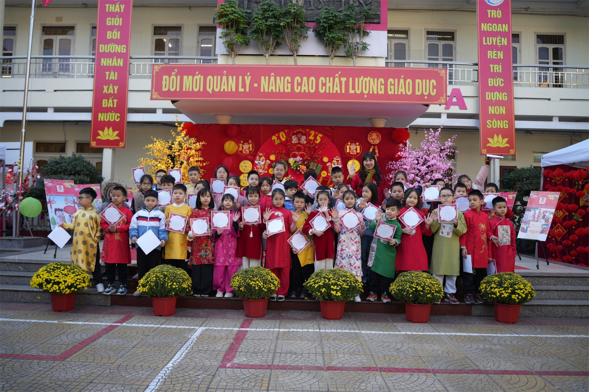 Trong không khí rộn ràng đón chào Xuân mới, ngày 13/01/2025, Trường Tiểu học Nguyễn Thị Minh Khai đã tổ chức thành công chương trình "Sắc màu Tết Việt" với nhiều hoạt động sôi nổi và ý nghĩa. Chương trình thu hút sự tham gia của đông đảo giáo viên, học sinh và phụ huynh, tạo nên một ngày hội văn hóa đặc sắc, mang đậm nét truyền thống dân tộc Việt Nam.