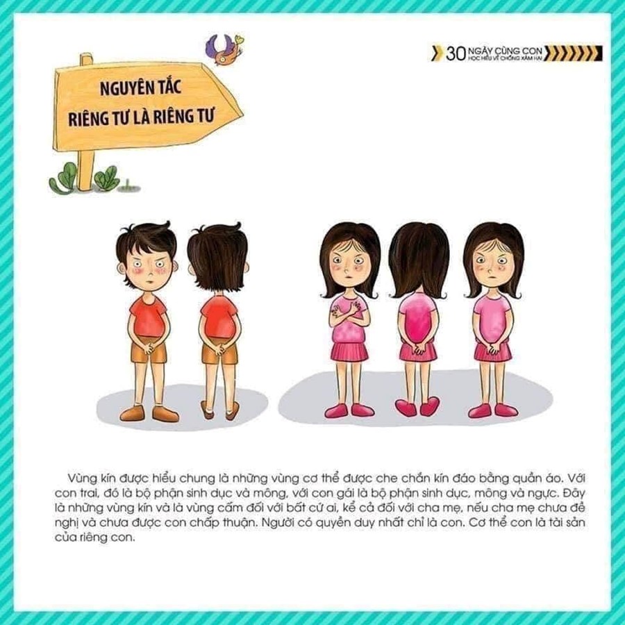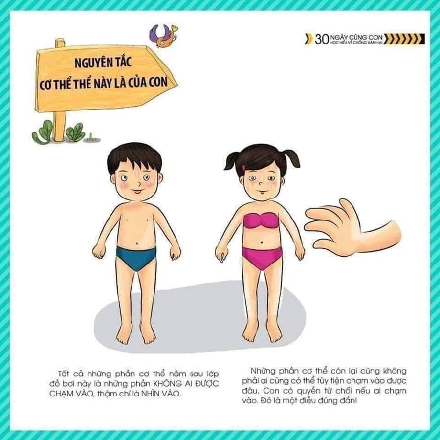 Các bậc phụ huynh nên dạy cho trẻ cách bảo vệ cơ thể, không cho bất kỳ ai chạm vào vùng nhạy cảm hay có những hành động ôm ấp, vuốt ve nếu trẻ không thích.