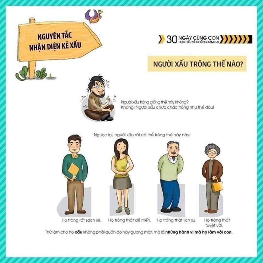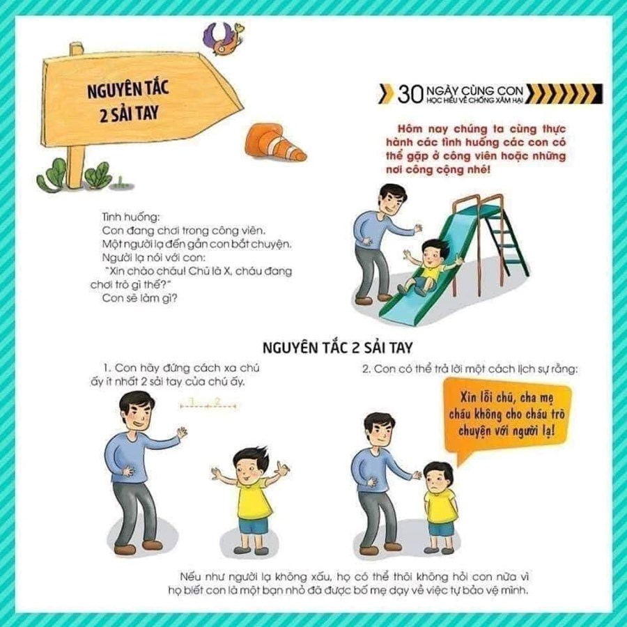 Ngoài ra, khi các bé không thích tiếp xúc với bất kỳ người nào, bé cũng nên chia sẻ cho cha mẹ biết và tránh xa những người mà bé không thích hay có những hành vi đụng chạm.