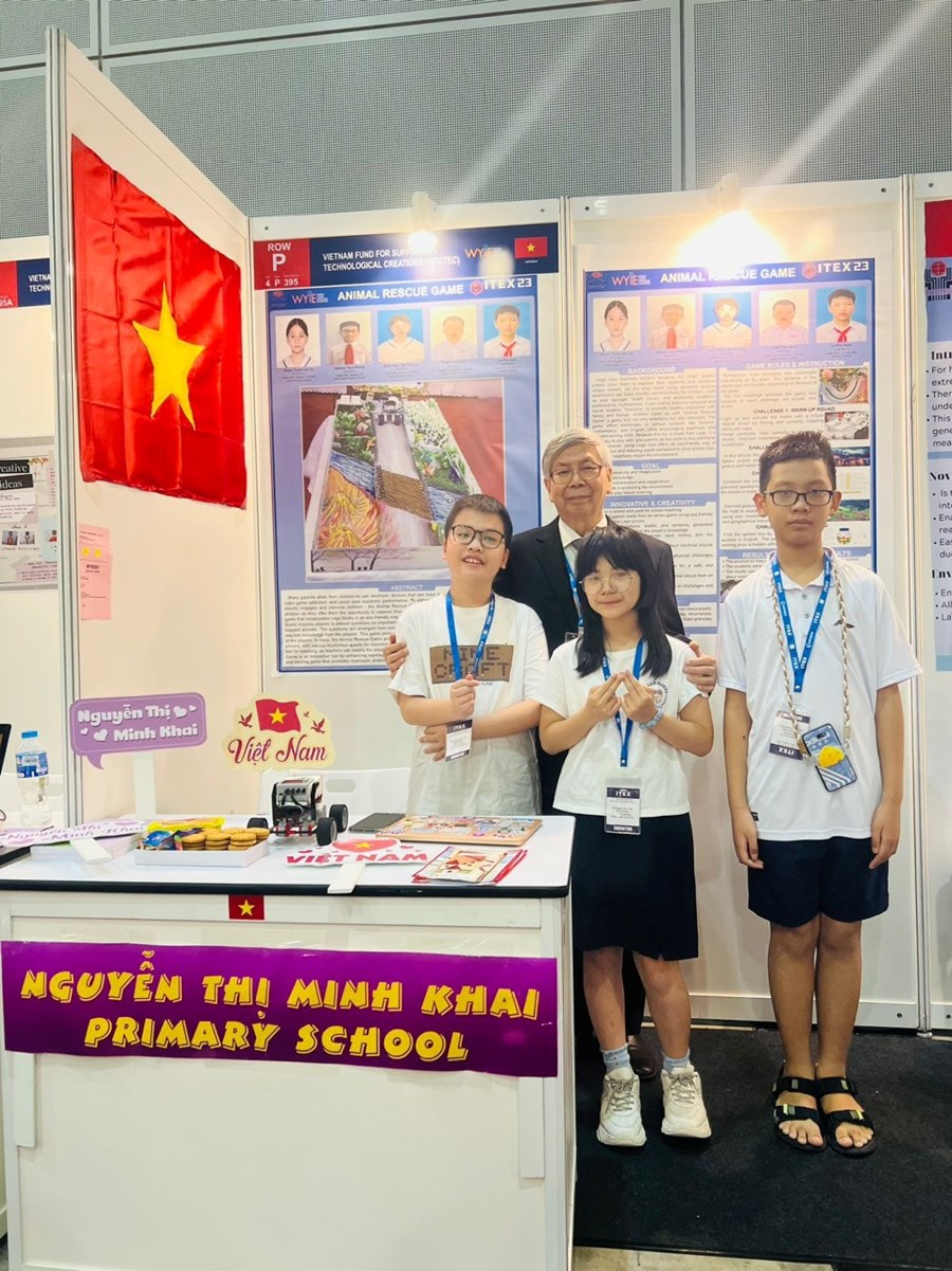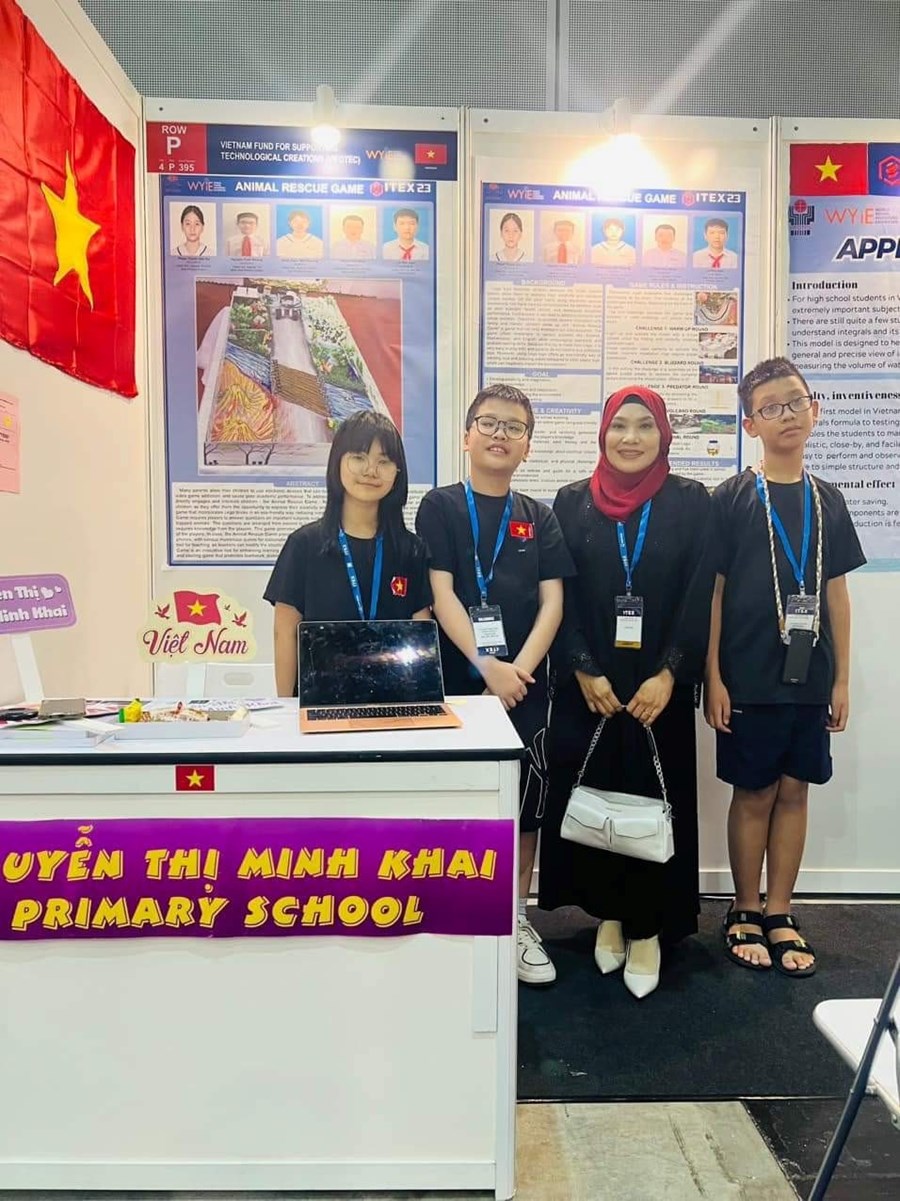 Từ ngày 10 đến 15/05/2023, các em học sinh trường Tiểu học Nguyễn Thị Minh Khai vinh dự được tham gia Triển lãm Quốc tế dành cho các nhà sáng tạo trẻ năm 2023 tại Malaysia với Sản phẩm: Trò chơi Giải cứu thú cưng.