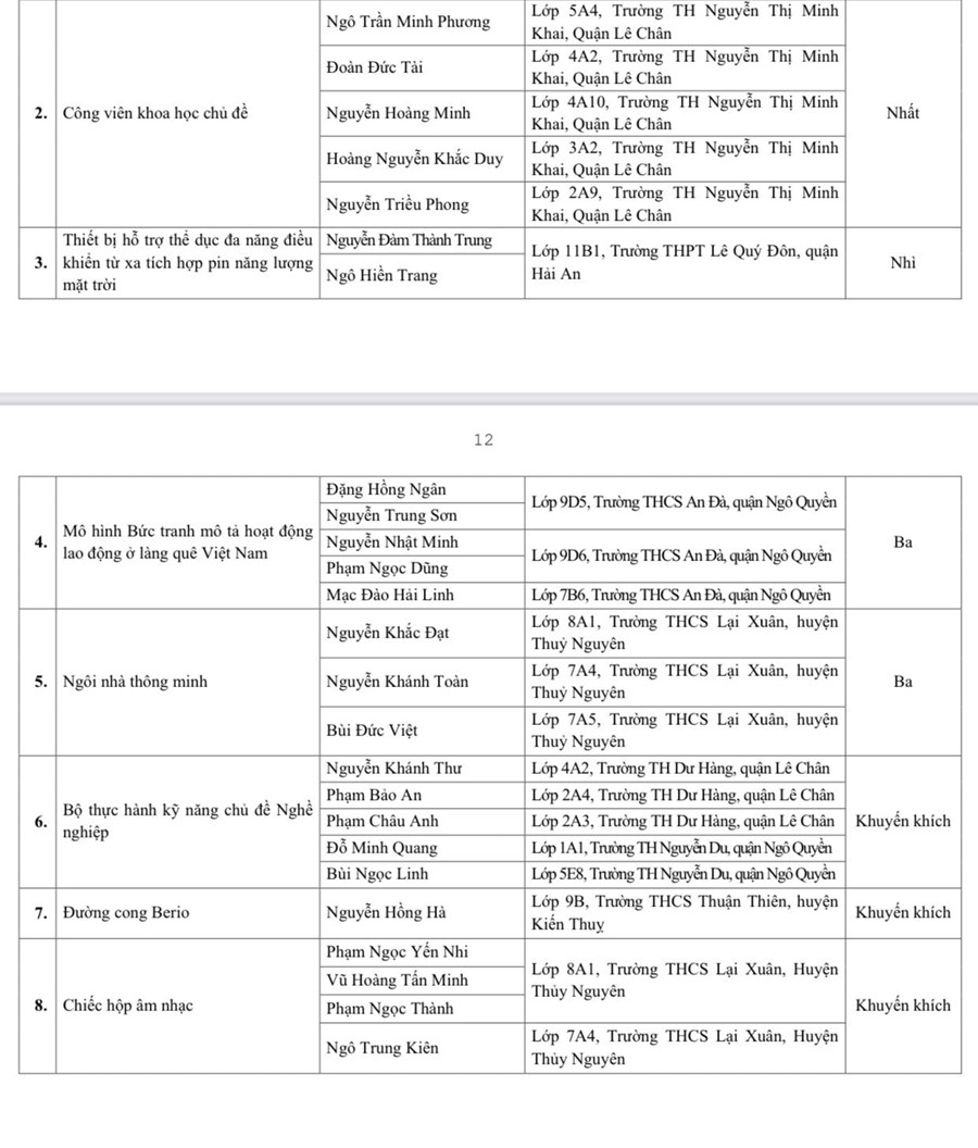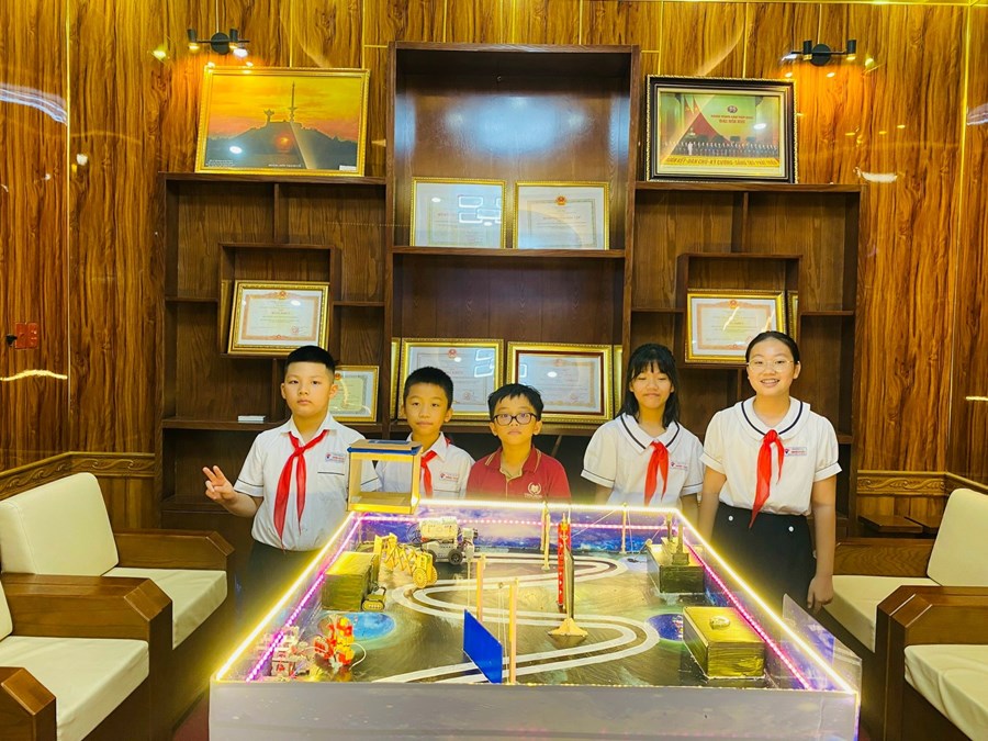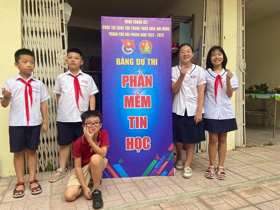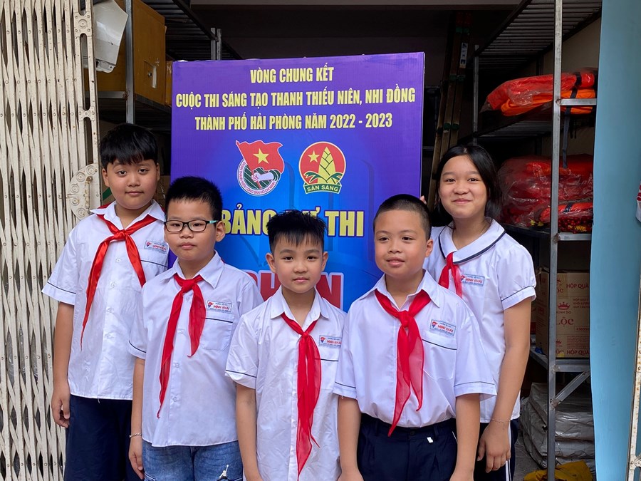 01 giải Nhất: Sản phẩm: Công viên Khoa học chủ đề, thuộc lĩnh vực Đồ dùng học tập, của các em: Ngô Trần Minh Phương lớp 5A4, Đoàn Đức Tài lớp 4A2, Nguyễn Hoàng Minh lớp 4A10, Hoàng Nguyễn Khắc Duy lớp 3A2, Nguyễn Triều Phong lớp 2A9.