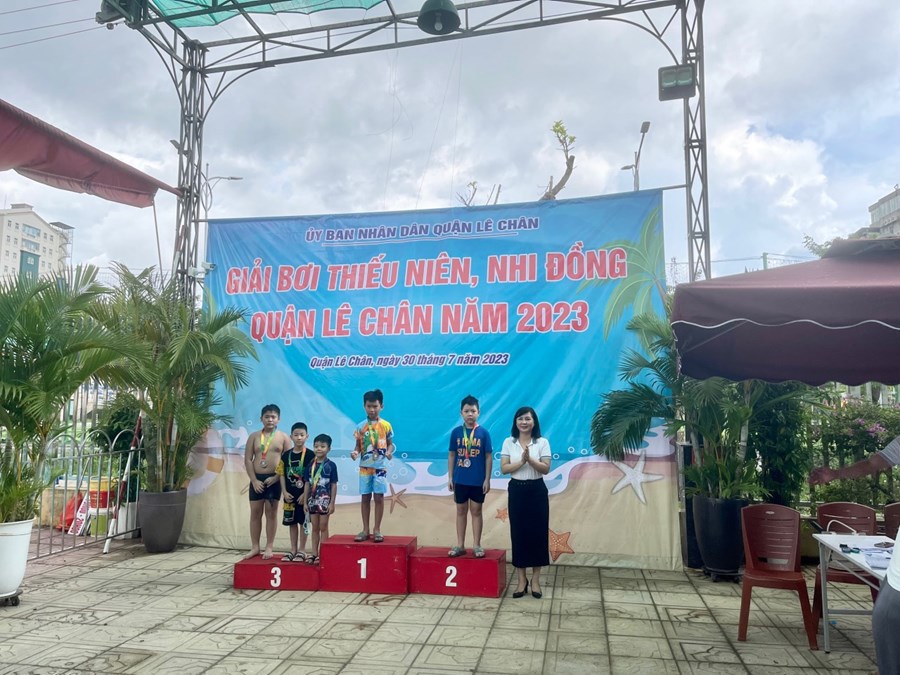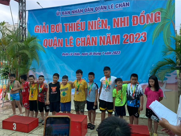 🌈🌈🌈Thực hiện kế hoạch số 197/KH-UBND của Uỷ ban nhân dân quận Lê Chân về tổ chức giải bóng bàn, cầu lông, bơi trong bể thiếu niên nhi đồng Quận Lê Chân năm 2023. Cuộc thi là một sân chơi thể dục thể thao lành mạnh, giúp các em thiếu niên nhi đồng hiểu về lợi ích và tác dụng của việc luyện tập thể thao; giao lưu học hỏi và khẳng định bản thân. Đồng thời giúp các em nâng cao sức khỏe, tầm vóc, thể lực và phòng chống bệnh tật. Các vận động viên nhí của đội tuyển bơi đến từ trường Tiểu học Nguyễn Thị Minh Khai đã tham gia sôi nổi, tích cực và đạt được những thành tích đáng khích lệ.