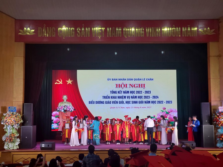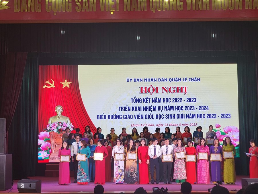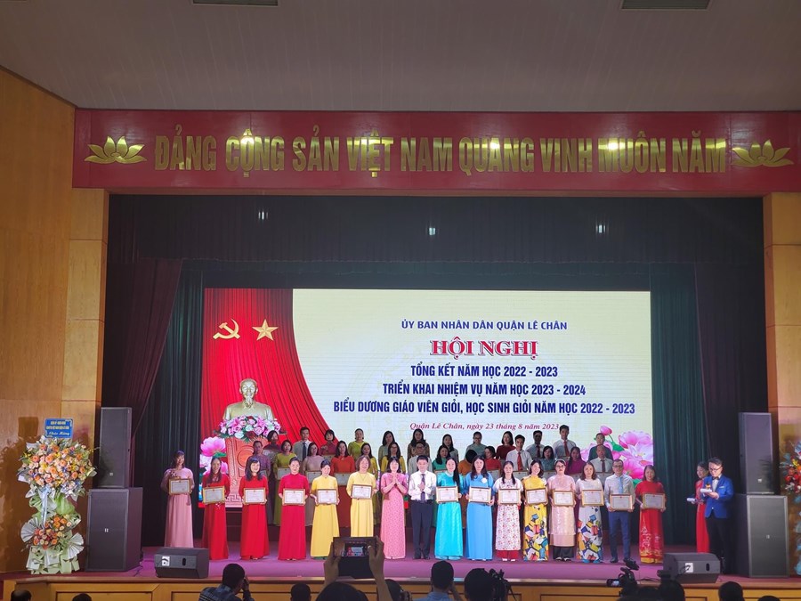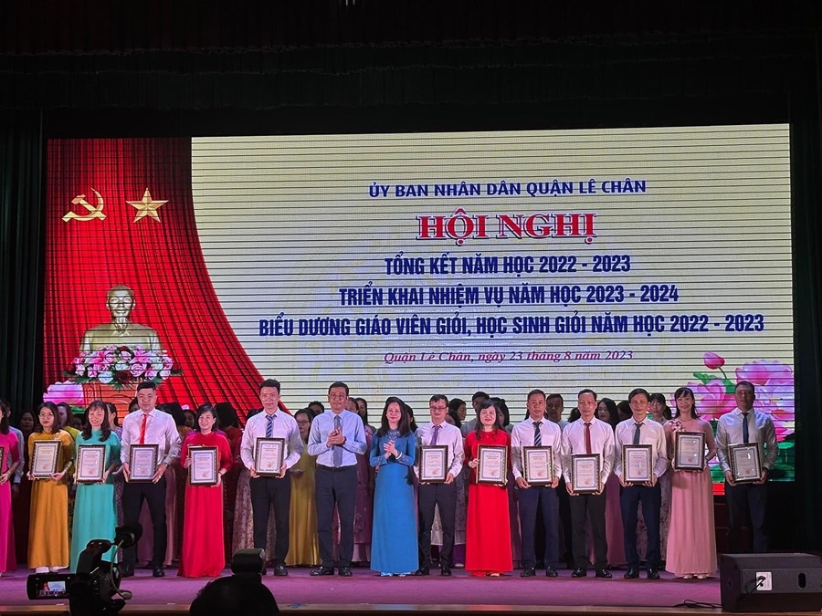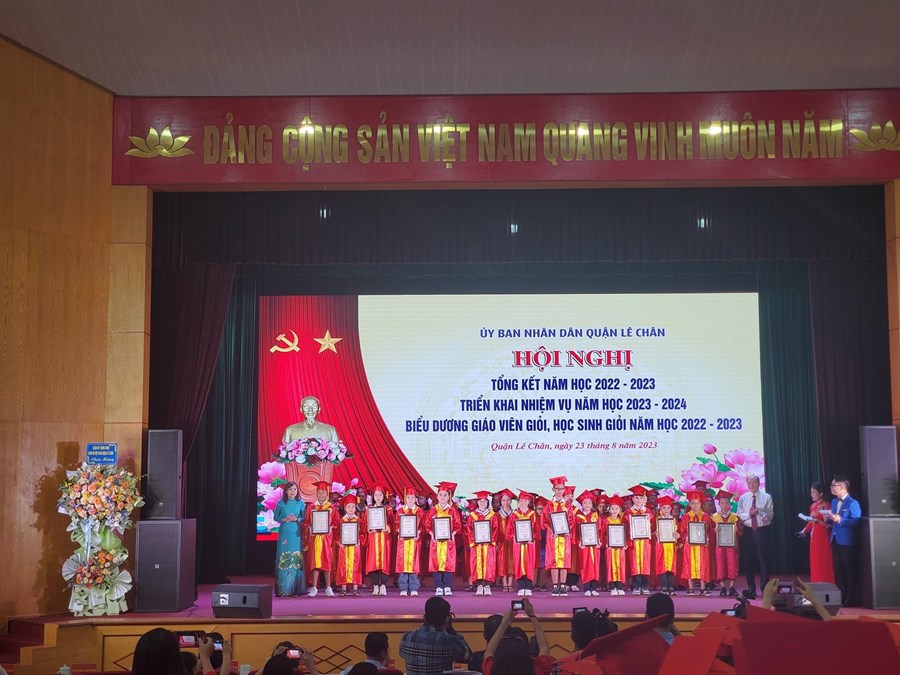 Sáng ngày 23/08/2023, ngành Giáo dục và Đào tạo quận Lê Chân tổ chức “Hội nghị Tổng kết năm học 2022 - 2023, Triển khai nhiệm vụ năm học 2023 - 2024, Biểu dương giáo viên giỏi, học sinh giỏi năm học 2022 - 2023”.